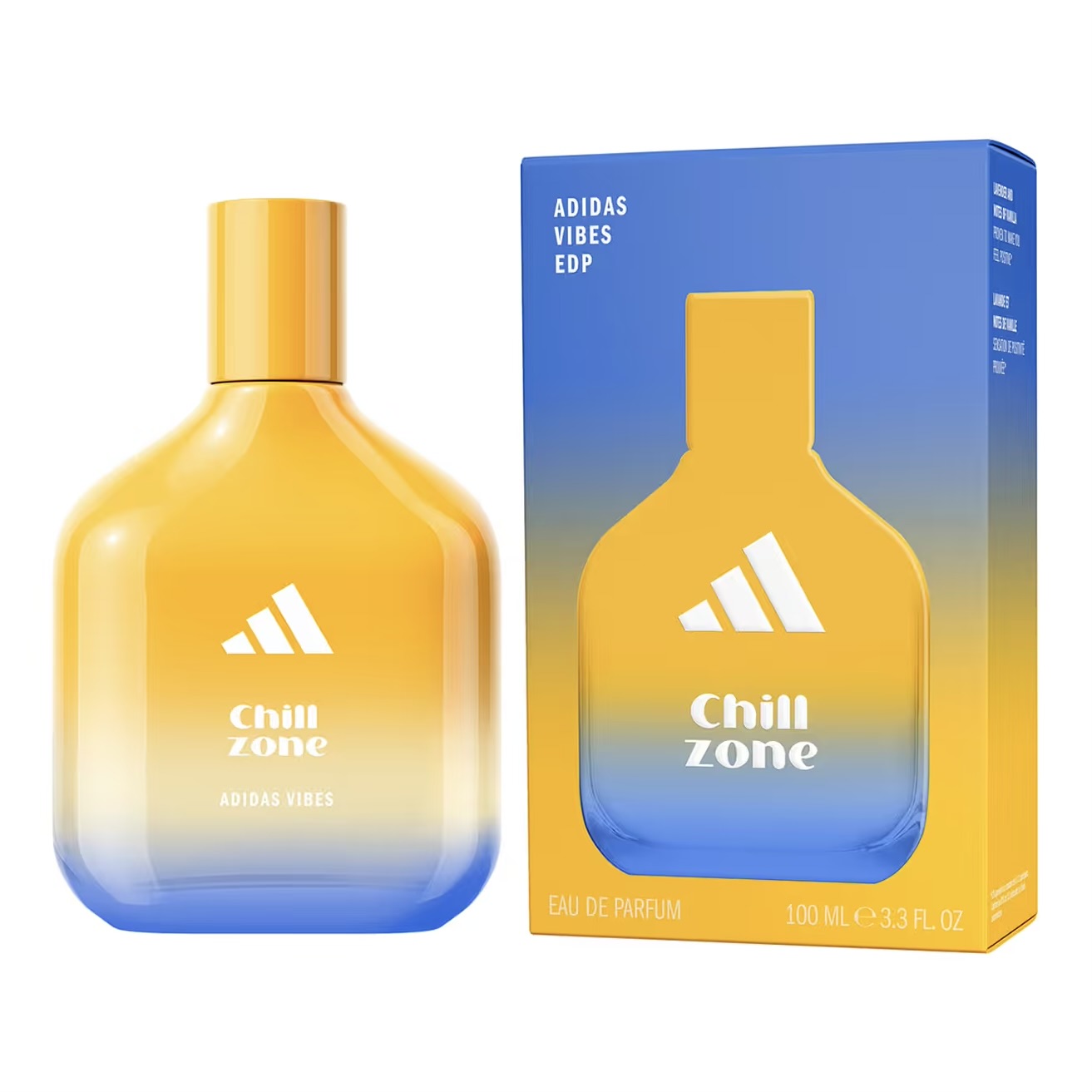 Feel the vibe and relax with the new adidas fragrance: Vibes Chill Zone Eau de Parfum. Proven to make you feel positive*, this mellow and spicy scent helps enhance your comfort level with calming Lavender and notes of Vanilla. This long-lasting fragrance features Olibanum and Lavender natural essential oils, with a vegan formula that’s dermatologically tested.