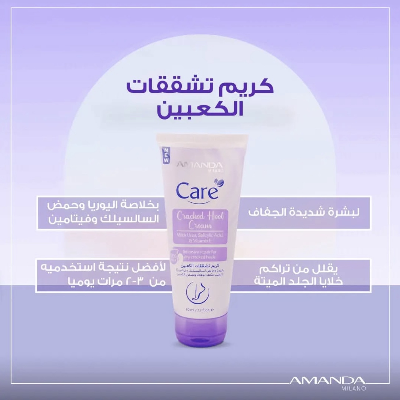 Amanda Care Cracked heel cream with 10% urea provides intensive repair fir dry cracked heels, as it helps the skin store moisture. With a rich nourishing formula that contains vitamin E which improve the skin surface, Salicylic Acid exfoliate dead skin cells and shea butter that relive walking discomfort, reduce inflammation and offers a soft skin feeling without being greasy or sticky.