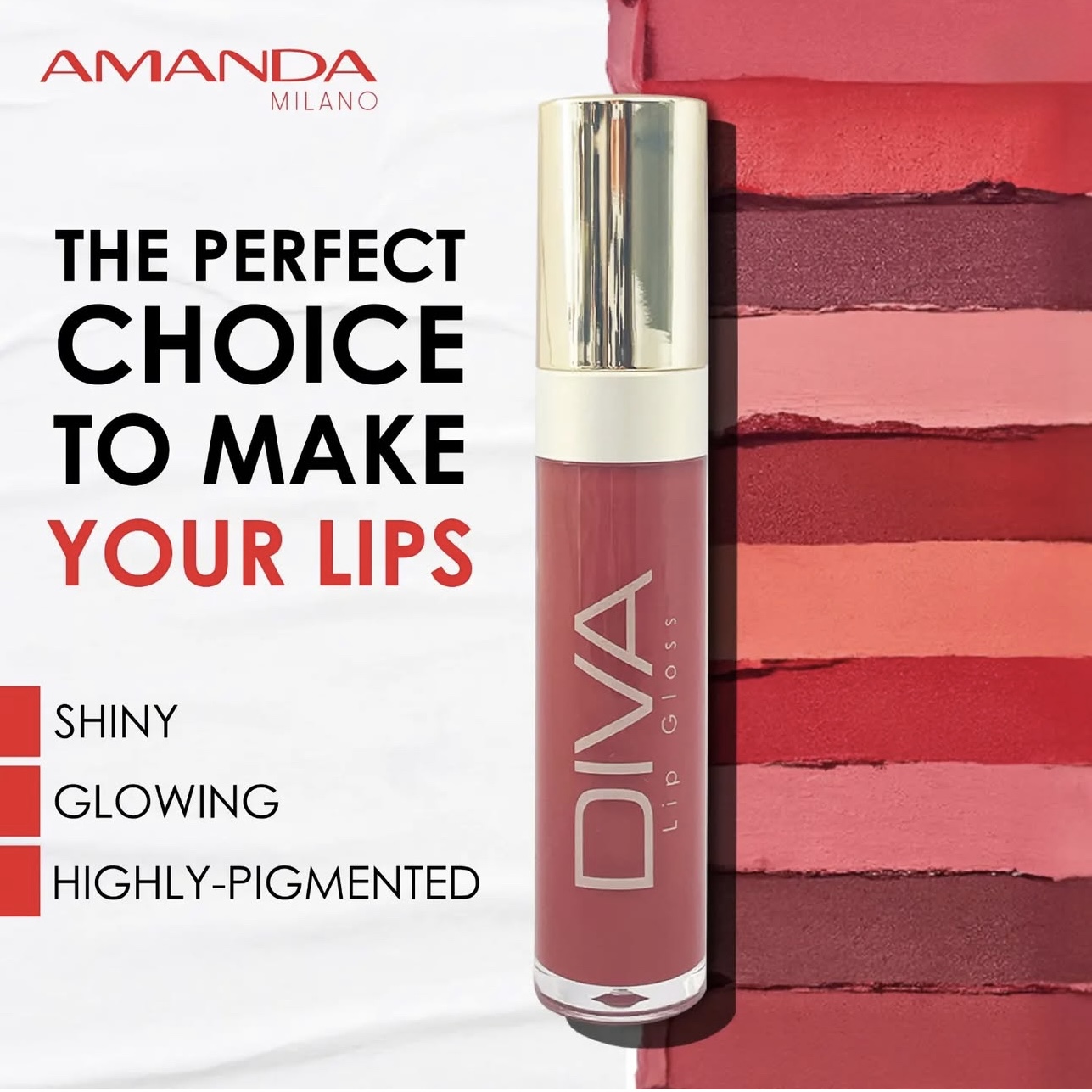 The Amanda Diva Lip Gloss has been designed with multiple shades so you can find one that best suits your look. Whether it’s subtle or bold, this lip gloss will make sure you have lips worth showing off! Get ready to turn heads wherever you go.