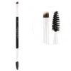 A dual-sided brow brush featuring high-quality synthetic bristles on one end and a spoolie brush for grooming and blending on the other.