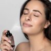 With the eyes and mouth closed, spray onto the face when the make-up is completed, from a distance of at least 20 cm.