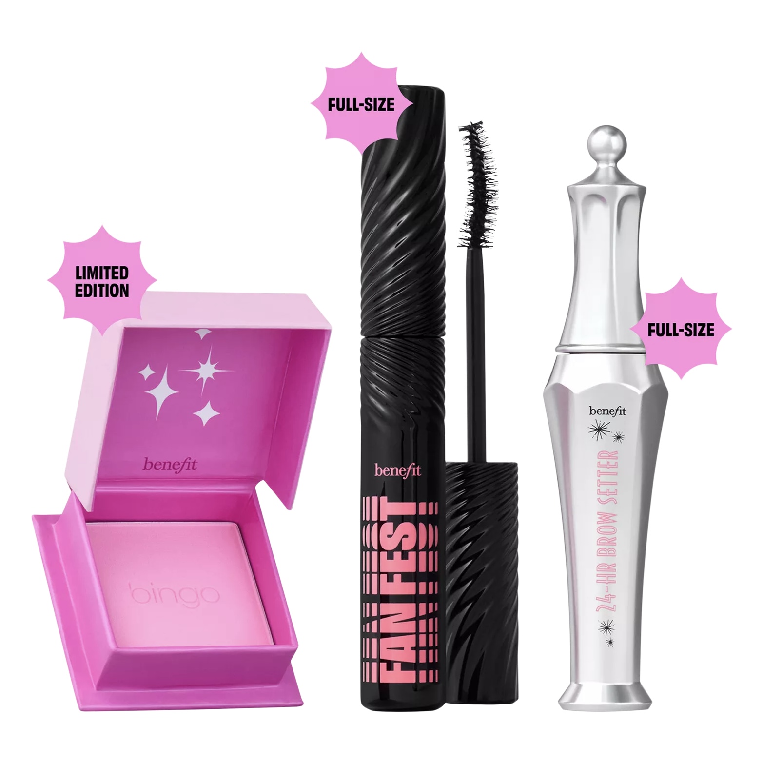 It’s Bingo Night at Benefit and luck’s on your side with Benebingo Gift Set! Score fanned-out lashes with 24HR* Fan Fest, all-day brows with 24HR Brow Setter and a bright pink blush that pops. Bonus: a bingo-inspired tote bag for the ultimate beauty jackpot. Ding-ding, you win!