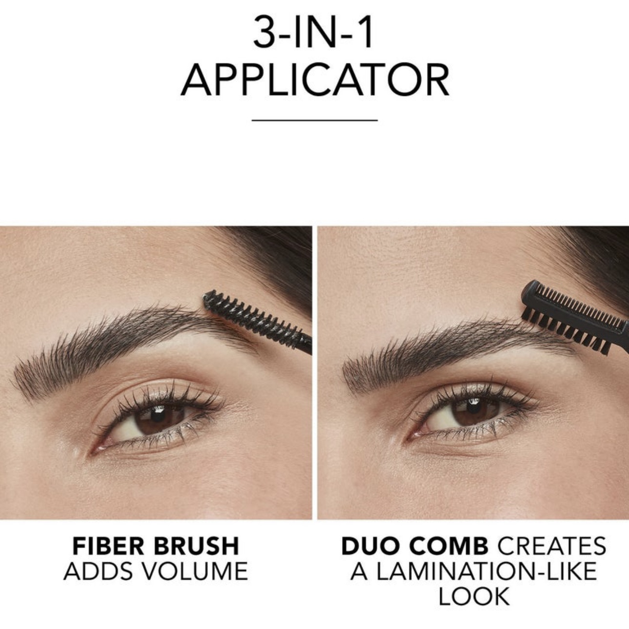 On one end, the fiber brush increases the volume of each hair, making your brows look fuller and thicker.
