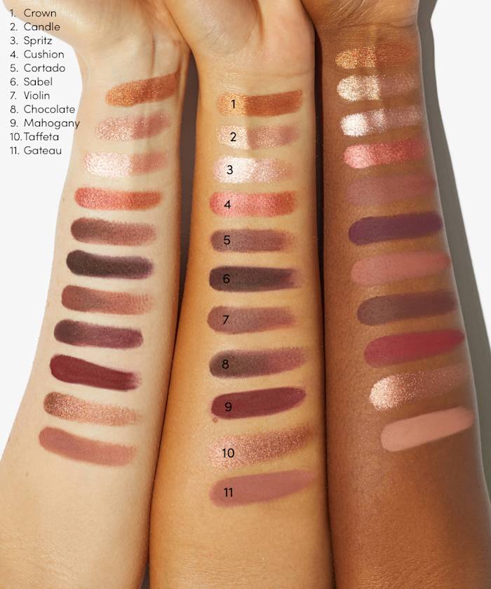 A collection of sixteen rich-toned eyeshadows.