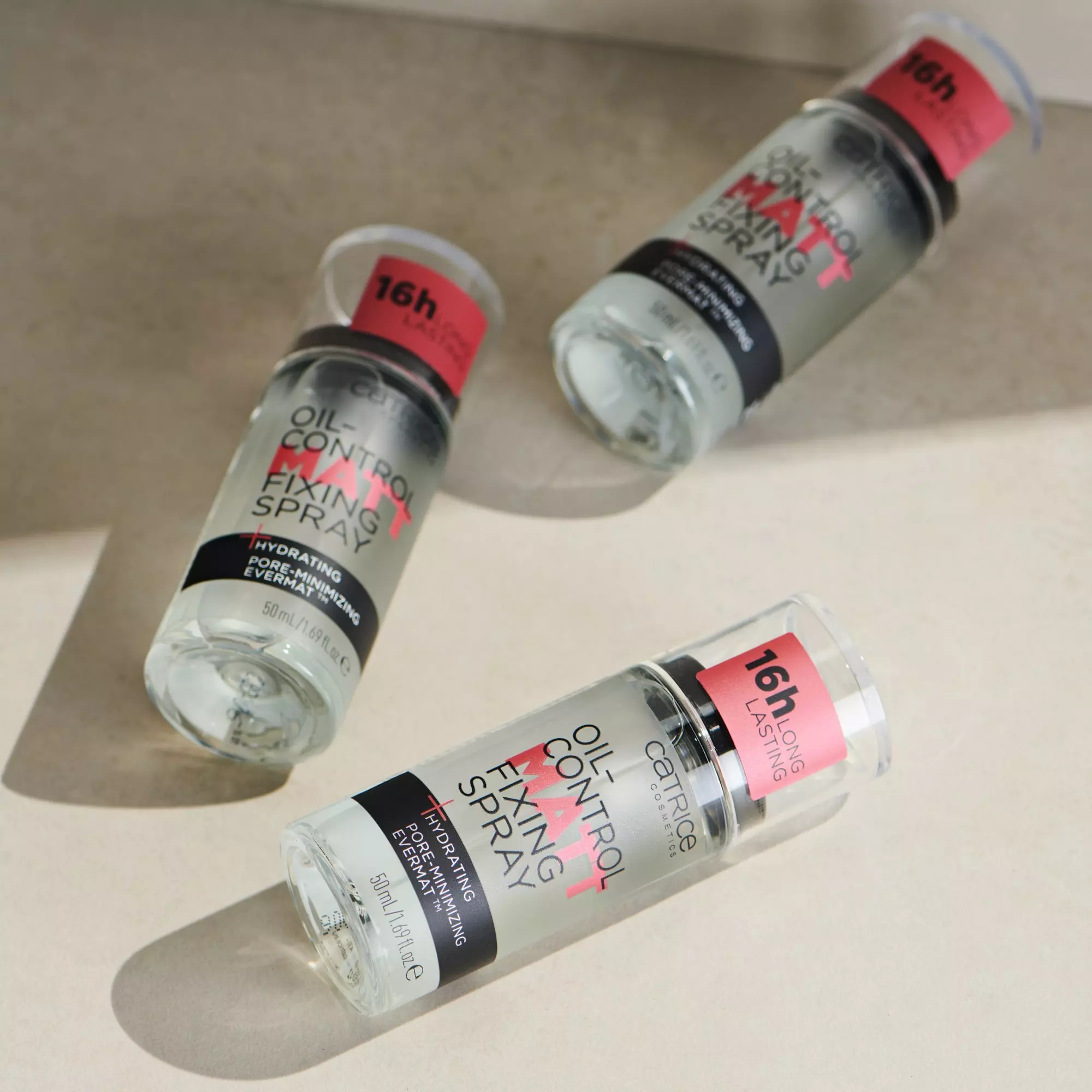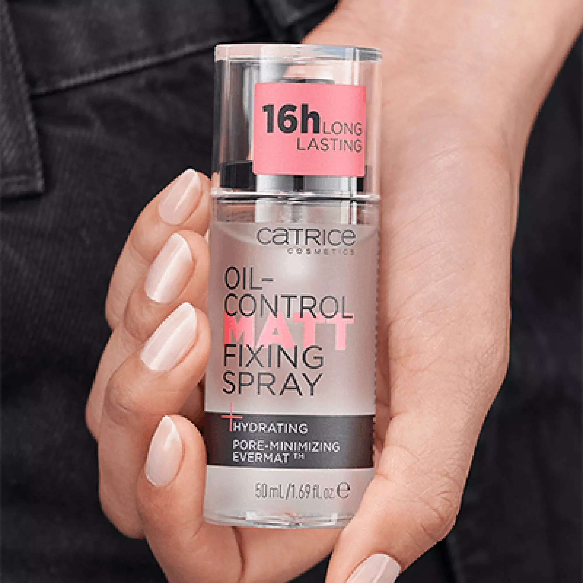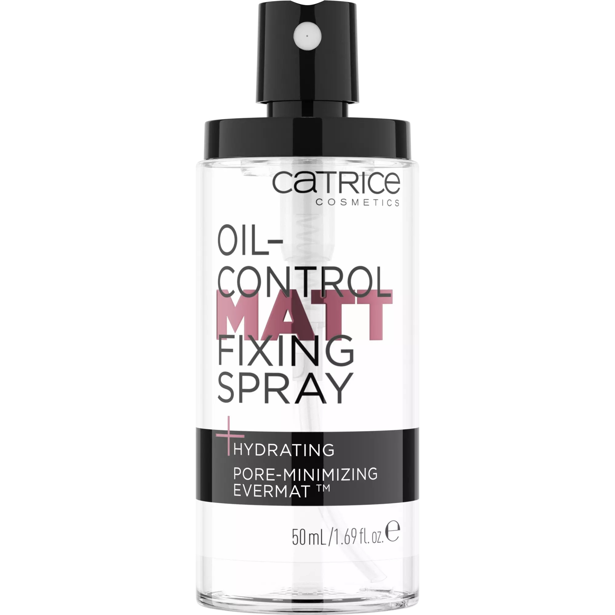 The Catrice Oil-Control Matte Fixing Spray minimizes pores and mattifies the complexion for up to 16 hours, without drying out the skin.