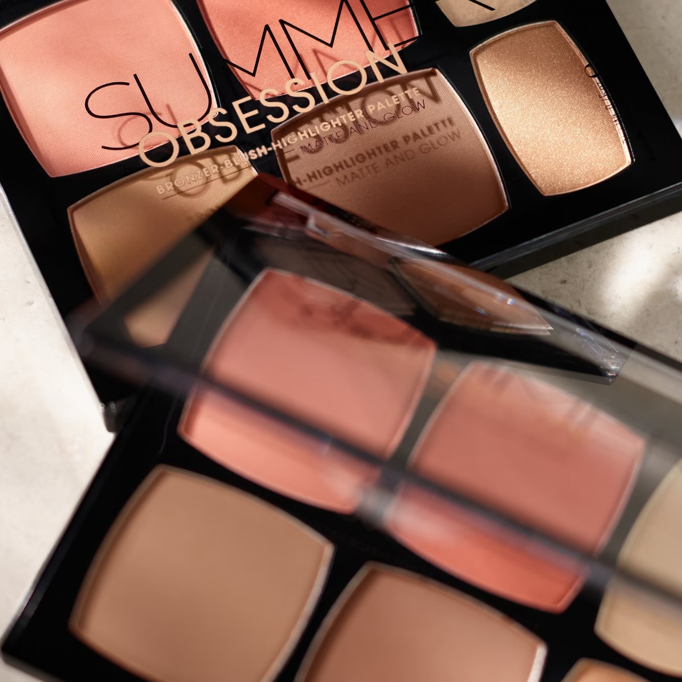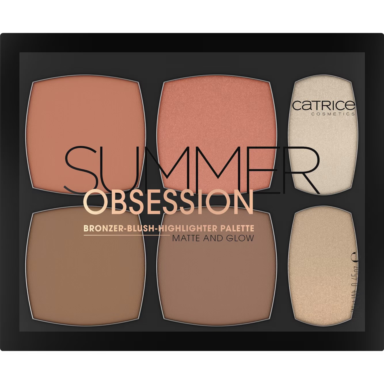 A sun-kissed complexion in seconds? Not a problem with the Summer Obsession Bronzer Blush Highlighter Palette Matte And Glow. The bronzer and blush shades can be used to emphasize the contours of the face and the highlighter shades to set accents. The powder textures are very easy to apply and blend.