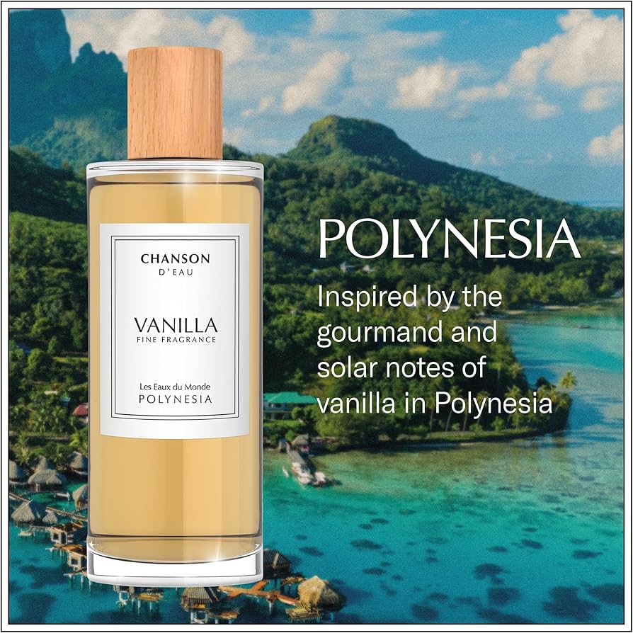 Embark on a fascinating journey with Chanson d’Eau. Discover Les Eaux du Monde: Vanilla, a warm, comforting fragrance inspired by aromatic fields of Polynesian vanilla. This delicious combination of juicy Pears and Apples, sweetened by hints of Spun Sugar and topped off with warm Vanilla notes, exudes elegance and femininity in a uniquely alluring way.