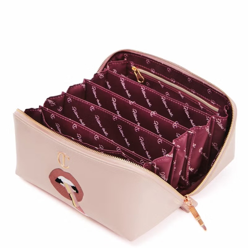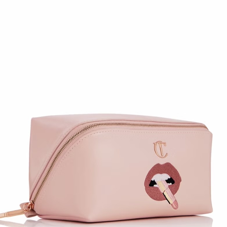 In PILLOW TALK PINK with an ICONIC lip print design and rose gold zip, this is the essential makeup organiser for glow-getters, lipstick-lovers and Pillow Talkers EVERYWHERE!