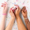 Indulge in a sweet celebration with the essence BIRTHDAY BOMB shiny lipgloss 01 Cake My Day! Its sheer milky texture contains pink shimmer particles, coating your lips in a super glossy finish that catches the light with every smile. The non-sticky formula glides on smoothly, ensuring a comfortable feeling, when you are wearing it. As a special treat, the lipgloss also has a yummy birthday cake scent, which lets you take that special birthday feeling with you, wherever you go.
