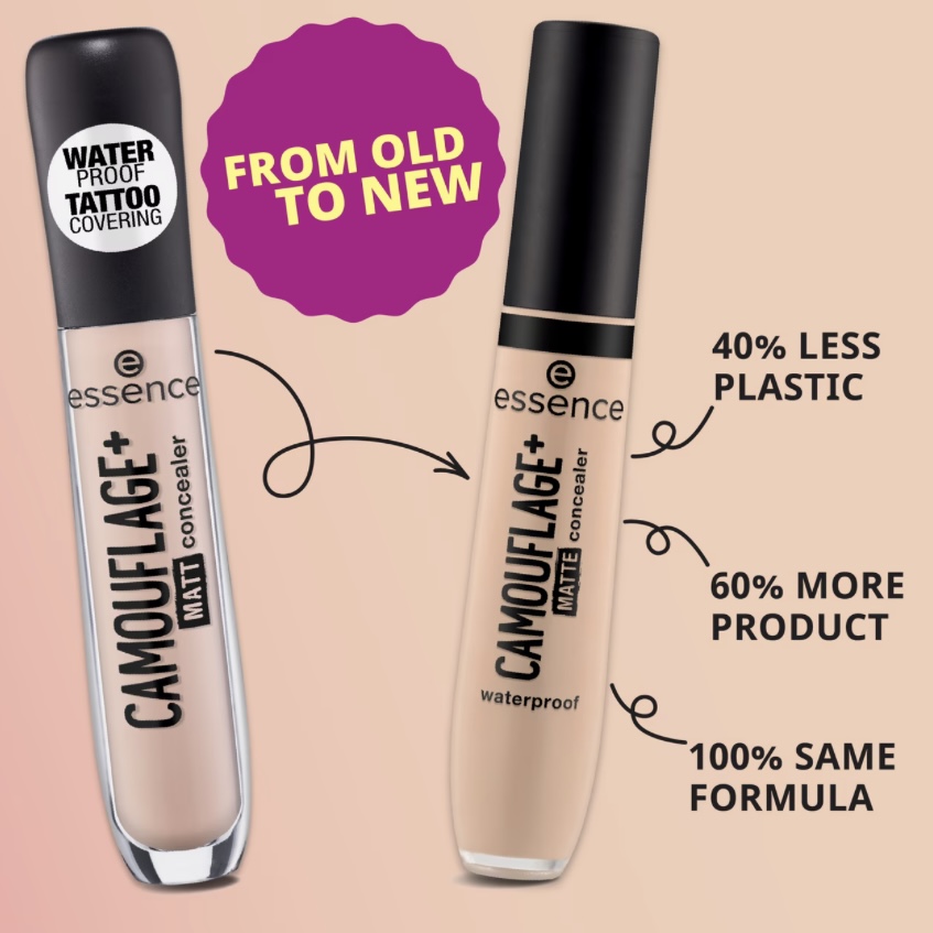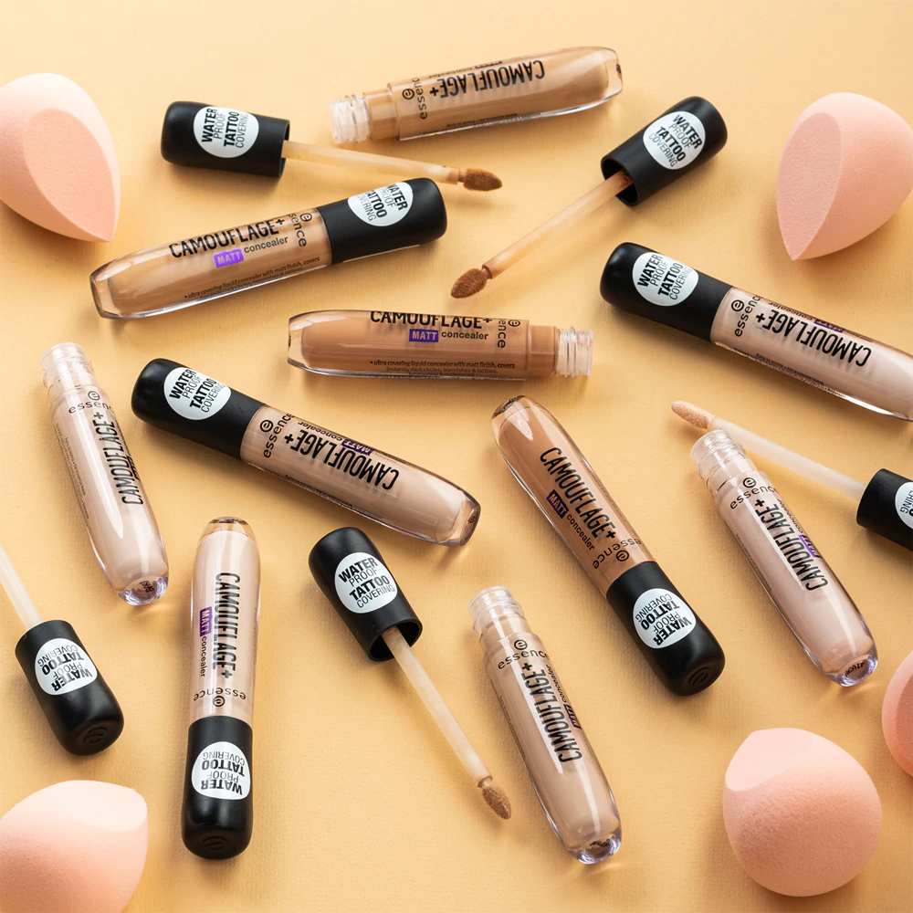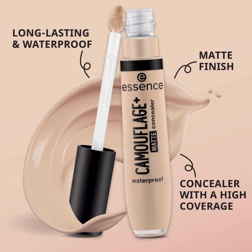 Say goodbye to visible imperfections with the essence CAMOUFLAGE+ MATTE concealer 180 in a medium neutral shade! This waterproof full-coverage hero is your go-to for a smooth, even complexion with a bold matte finish. Whether you’re targeting dark circles, blemishes or redness, its fluid texture blends effortlessly into the skin for a flawless result that won’t weigh you down. Designed for those who love a mattifying effect, this lightweight liquid concealer delivers serious coverage power – now in a redesigned, more sustainable packaging that uses 40% less plastic and offers 60% more product.