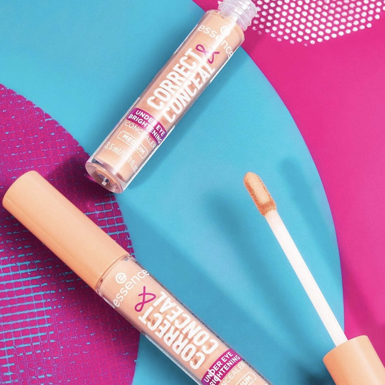Brighten up your day and your eyes with the essence CORRECT AND CONCEAL under eye brightening concealer . The concealer comes in a peachy nude shade and has a medium to high coverage that will leave your under eye area looking fresh and smooth. Thanks to the aloe vera, it also gives your skin the care it deserves. For a perfect result, apply the concealer with the integrated applicator and gently pat the product into your skin with your clean ring finger or the essence concealer brush or a sponge. You can use it on its own but also add your favourite concealer on top.