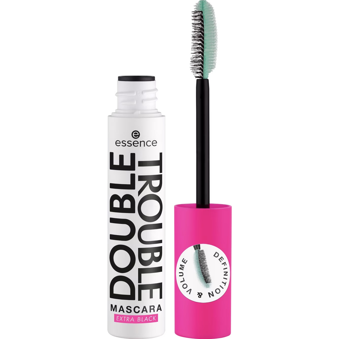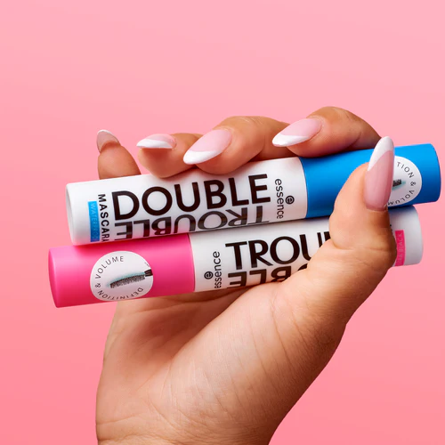 Double the volume, double the trouble! essence DOUBLE TROUBLE MASCARA is bold, daring, and has a double-sided brush for a lash look that’s got it all. The applicator has two sides, an elastomer brush and a fiber brush for extreme definition, curl, and length! Also available in a waterproof!