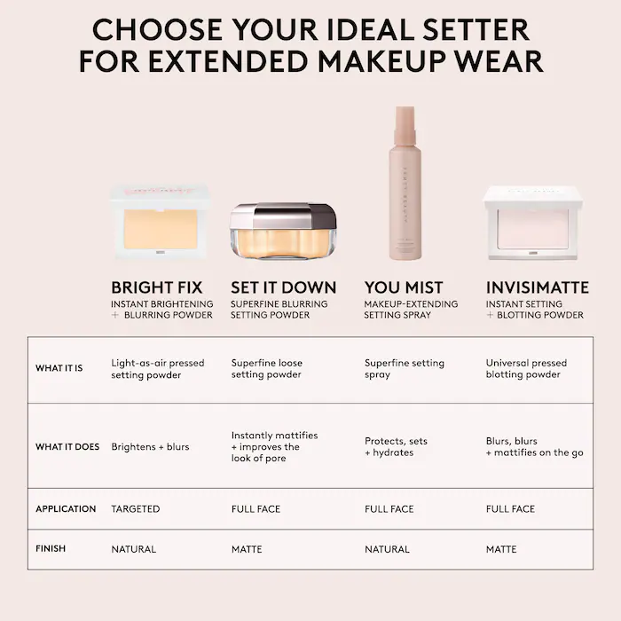 What it is: A light-as-air setting powder that extends your makeup wear, defends against sweat + humidity and mattifies shine while diffusing the look of pores.