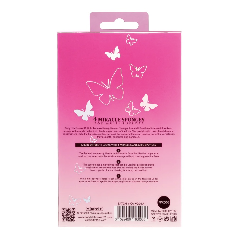 The Blenders 4 Miracle Sponges These Beauty Blender Sponges by Daily Life Forever52 is a multi-functional & essential makeup sponge with rounded sides that blends more significant areas of the face. The precision tip covers blemishes and imperfections while the flat edge contours around the eyes and nose, leaving you with a smooth, enhanced, and gorgeous complexion. The small sponges go in the nooks & corners of the face to blend out the product smoothly, giving you a flawless look. Now look beautiful and confident always & anywhere, this sponge is the best companion for all your travels. Optimize your beauty routine with this multi-functional sponge.