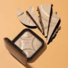 - Using a fluffy highlighting brush or your fingertips, gently pick up a small amount of the highlighter.
