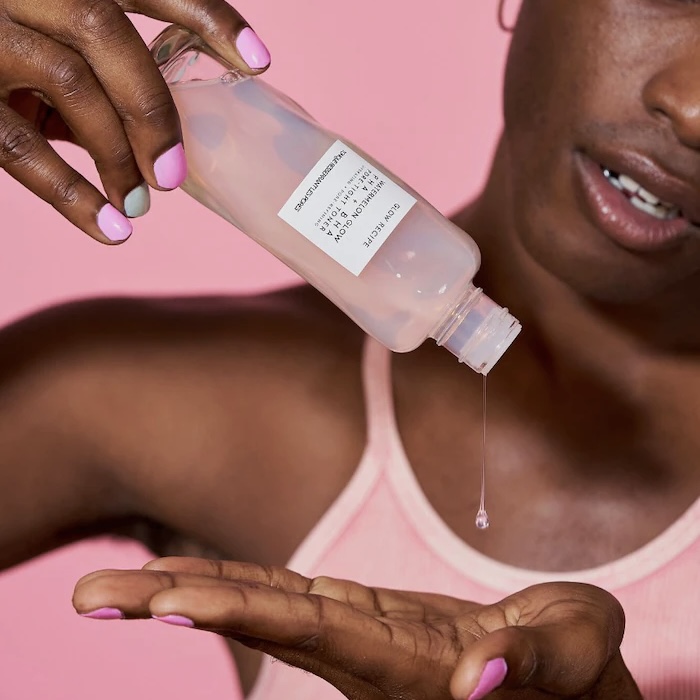 -Apply one to two pumps of the Watermelon Glow Niacinamide Dew Drops to visibly brighten skin and boost glow.