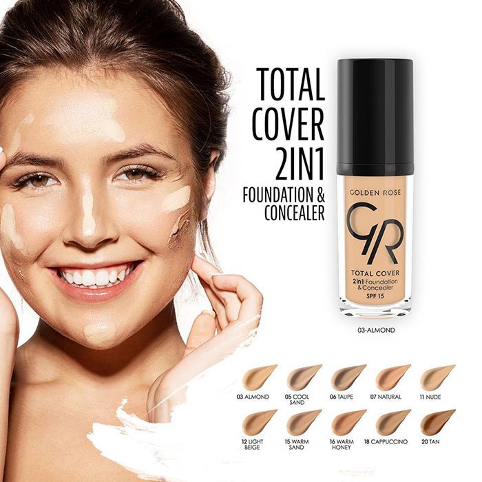 - Golden Rose Total Cover 2in1 Foundation and Concealer evens out the skin tone.