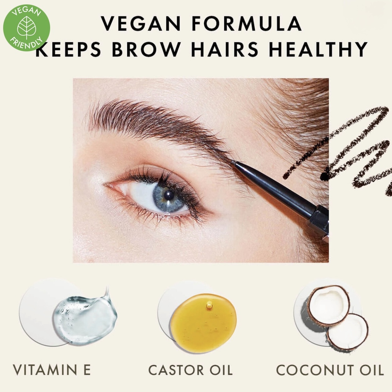 An ultra-fine 0.9mm tip, retractable brow pencil that precisely defines, shapes and fills your brows using tiny hair-like strokes that give a microblade-worthy effects to create brows that look on point, literally.