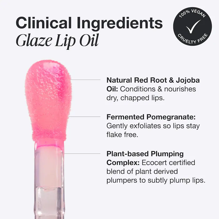 – Plant-Based Plumping Complex: Peptide clinically shown to smooth and visibly plump lips over time.