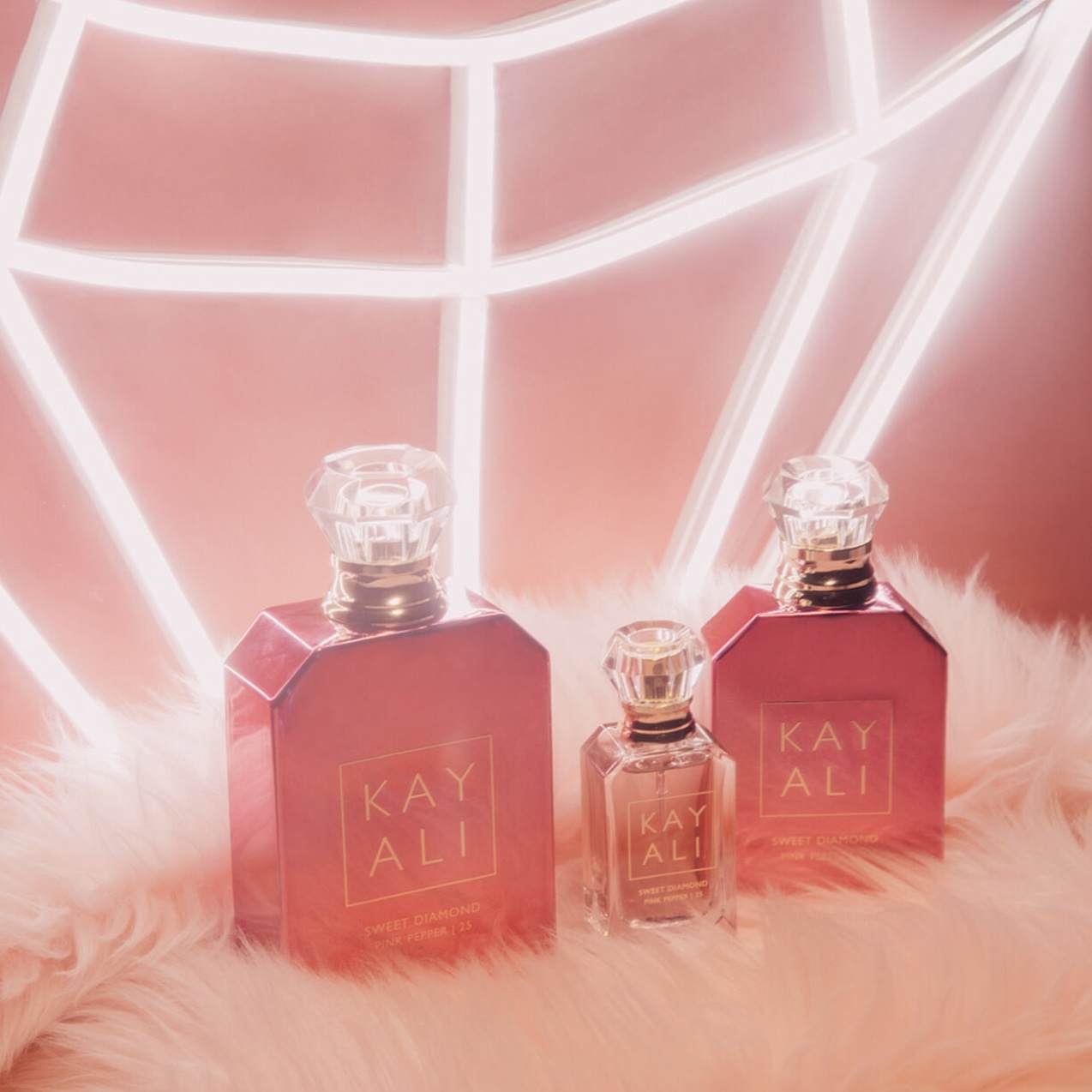 Sweet Diamond Pink Pepper | 25 is an electric, floral, woody creation. With its luxurious, modern metallic finish the unique bottle epitomizes the vibrant and flirtatious juice inside. The scent of Sweet Diamond Pink Pepper | 25 combines the spiciness of pink pepper and saffron with sweet Bulgarian Rose and Royal Lily florals for a perfect balance. Deepened with Sandalwood and Golden Amber and intriguingly heightened with sparkling bergamot, this scent is perfect for those who expect a little more from the unexpected. The number 25 indicates the 25 rounds of formula modifications that went into creating the perfect balance of flirtatious and sweet.