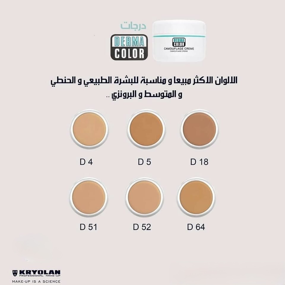 Dermacolor Camouflage Creme is an especially highly pigmented make-up which is designed to correct and cover skin disfigurements, discolorations and tattoos. Dermacolor Camouflage Creme is especially suitable for face and neck. With proper use of the Dermacolor Camouflage System skin abnormalities can be easily corrected. Once Dermacolor Camouflage Creme is fixed using Fixing Powder and Fixing Spray from Dermacolor it will be waterproof and protects the skin against damaging UV radiation. Dermacolor Camouflage could last even under extreme conditions like swimming, heat and physical strain. Dermacolor Camouflage Creme is available in an extensive range of shades and those are intermixable which gives the make-up a natural appearance when applied correctly.