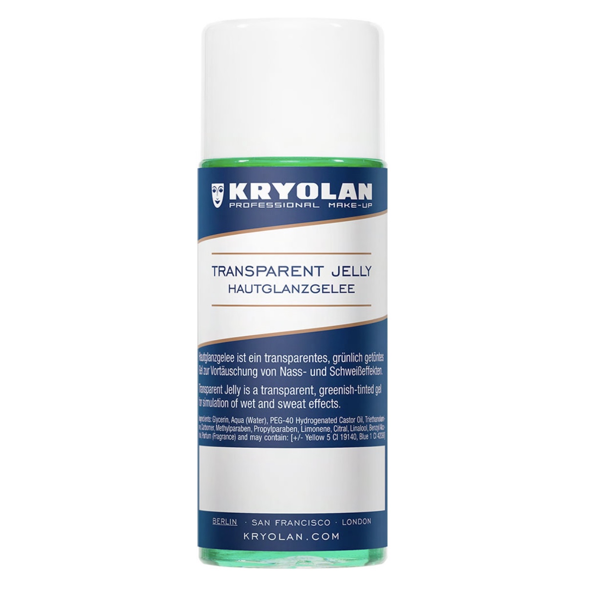 Transparent Jelly is a transparent gel for simulation of wet and sweat effects. Dab Transparent Jelly with a sponge or brush onto the required areas of skin, after make-up has been applied and has been set. After a few minutes, the preparation will be almost dry.