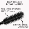 Our tiniest brush for crazy long lashes. Our innovative elastomer brush has 480+ nano-bristles that lengthens & separates every lash to unleash multiplied lashes that flutter