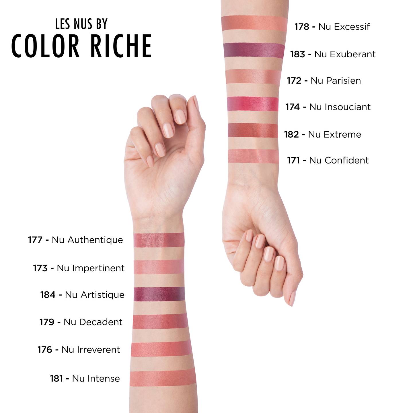 Discover NEW L’Oréal Paris Les Nus by Color Riche satin finish lipsticks, 11 radiant nude shades, visible on a variety of lip tones, infused with pure caring oils.