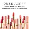 Our satin finish lipstick Color Riche, which has given rich colour and caring formulas together since 1985, has been upgraded thanks to our range enriched with argan oil and vitamin E. 11 intense nude buildable shades provide your lips with saturated color and a creamy satin finish. This lipstick’s argan oil infused formula ensures a smooth application and non-drying comfort, so your lips feel luxuriously soft and moisturized. L’Oreal Paris celebrates 50 years of our iconic worth it slogan. Continuing female empowerment Color Riche Les Nus’ case is exclusively designed by a female illustrator and the bullet is a unique shape to resemble a female silhouette.