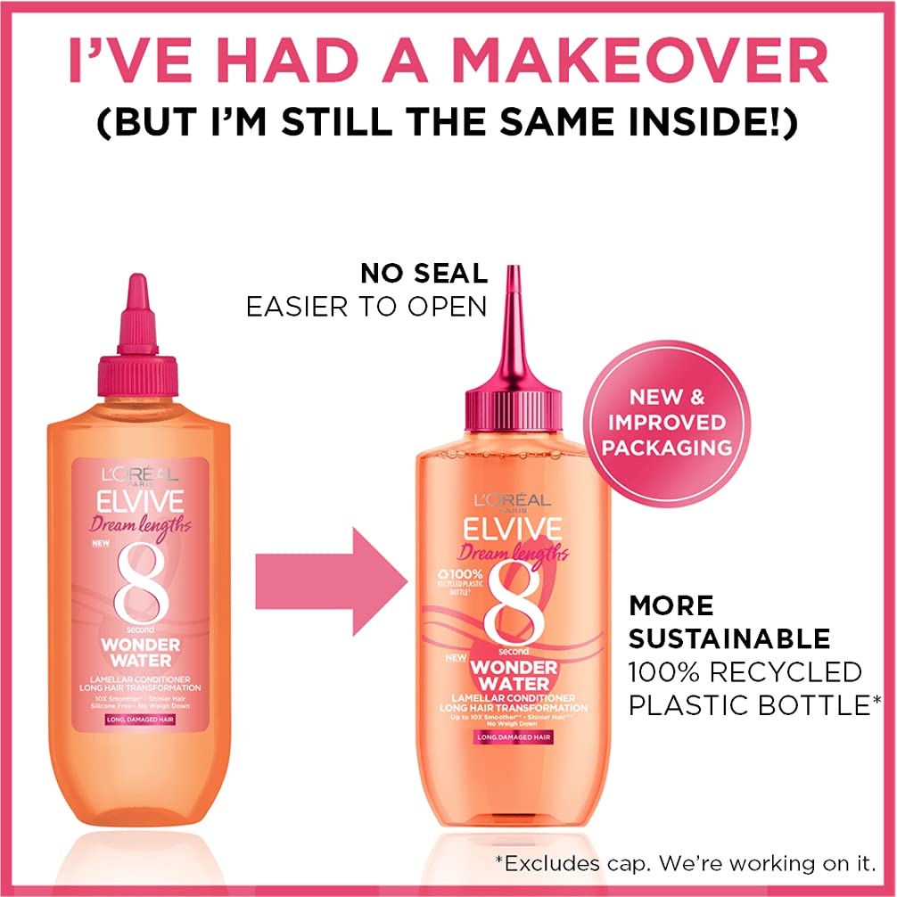 Elvive Dream Lengths system of shampoo, conditioner, treatments and dry shampoo cares for long hair and magnifies looks for the long hair of your dreams. Dream Lengths Restoring Shampoo visibly repairs damage without weigh down, Dream Lengths Super Detangler Conditioner instantly detangles to reduce breakage, Dream Lengths No Haircut Cream Leave-In Conditioner helps seal split ends, Dream Lengths 8 Second Wonder Water Lamellar Rinse-Out instantly transforms long damaged hair in 8 seconds, Dream Lengths Heat Slayer Pre-Iron Spray Leave-In protects against heat damage up to 450F degrees, Dream Lengths Air Volume Dry Shampoo instantly absorbs oil for a long-lasting clean feel with no white residue, Dream Lengths Super Curls Cream Leave-In deeply nourishes and defines curls and waves, and Dream Lengths Frizz Killer Serum Leave-In tames frizz and static.