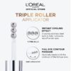 1.5 percent pure Hyaluronic acid, 1 percent pure caffeine eye serum to visibly re-plump, brighten and reduce crow’s feet. Cooling ‘Triple roller’ applicator for full eye contour massage to help noticeably depuff under eyes. Eyes look younger and less tired. Overtime, dark circles look noticeably brighter.