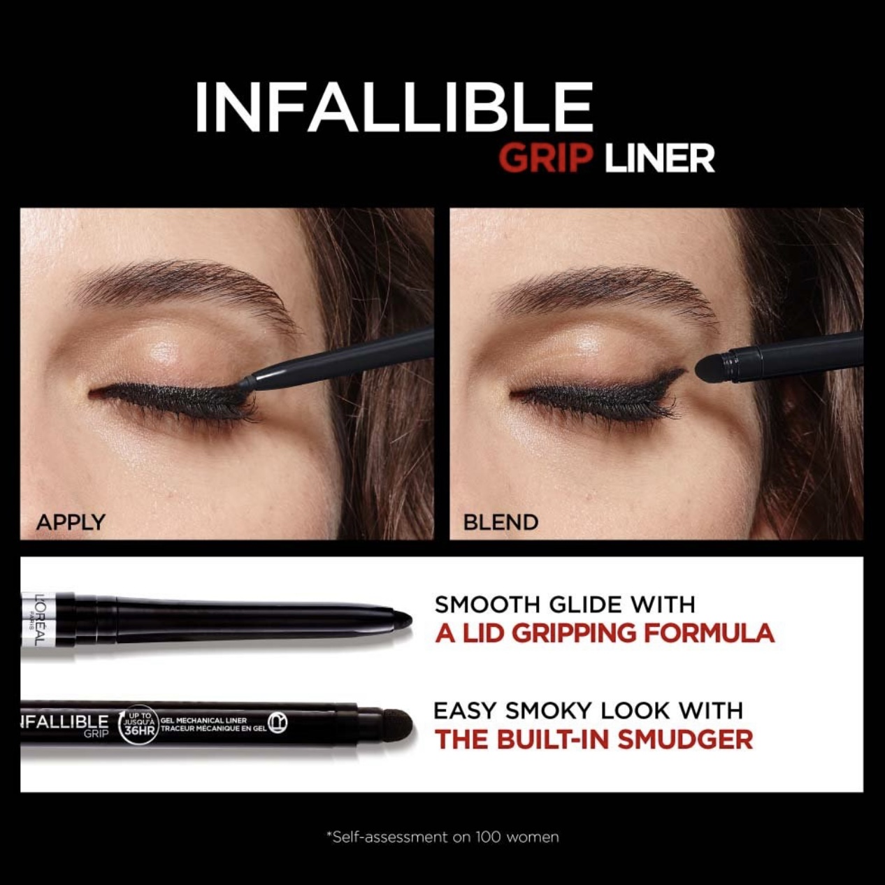 Infallible Grip Mechanical Gel Eyeliner defines your eyes with vibrant gel color that lasts up to 36 hours. The pointed tip glides effortlessly across the skin without skipping or dragging to create bold or classic eyeliner looks. The 8, highly-pigmented shades, are: