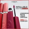 Indulge your pout with Infallible Matte Resistance Liquid Lipstick. Perfect for all day wear, this velvety matte liquid lipstick feels weightless and comfortable on the lips while it offers bold, beautiful color. It’s also infused with hyaluronic acid for all-day comfort. Infused with Hyaluronic Acid. Bold color payoff in one swipe.