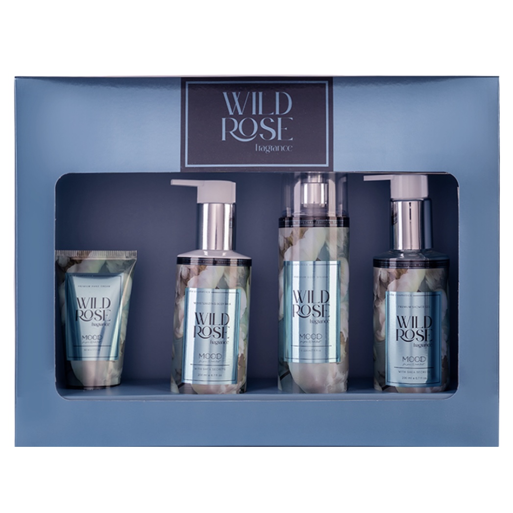 MOOD All OVER SET curated to pamper and indulge your senses from head to toe. This exquisite set includes Four essential products designed to nourish, refresh, and moisturize your skin, leaving you feeling rejuvenated and beautifully scented.
