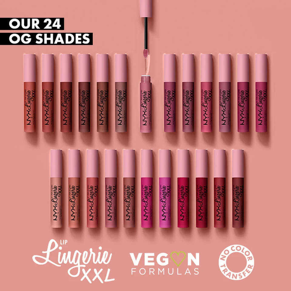 Meet the first liquid shapewear for your lips that gives you a full-bodied, smooth matte look for up to 16 hours. No crack, no transfer, no fade. Available in 31 color-saturated hues, from soft nudes to a bold black liquid lipstick shade, Lip Lingerie XXL Matte Liquid Lipstick is a must-have for all-day matte color.