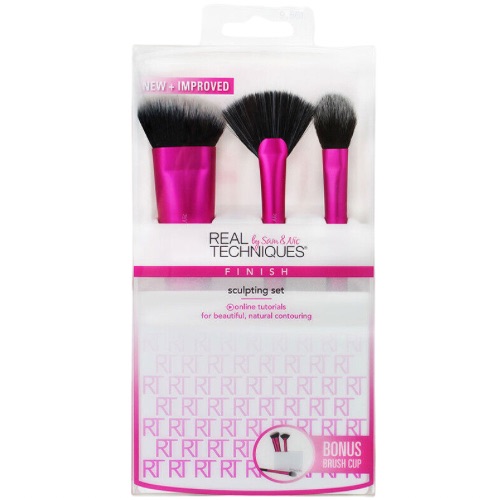 - The perfect set for contouring and highlighting. Contains sculpting brush, fan brush, setting brush and white brush cup.