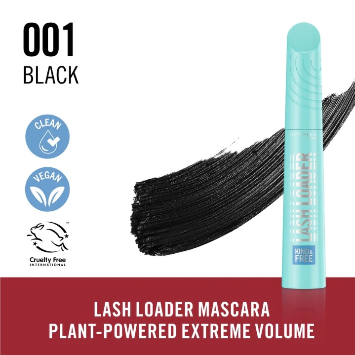 Rimmel Kind & Free Lash Loader Mascara delivering up to 300% more volume while being gentle on sensitive eyes. Its vegan, plant-powered formula with 100% plant-based fibers and aloe leaf extract strengthens and builds volume without clumping. Ophthalmologist tested and approved, it’s the perfect choice for those seeking performance with care. Kind to your lashes, your eyes for a fuller, softer, and more defined look
