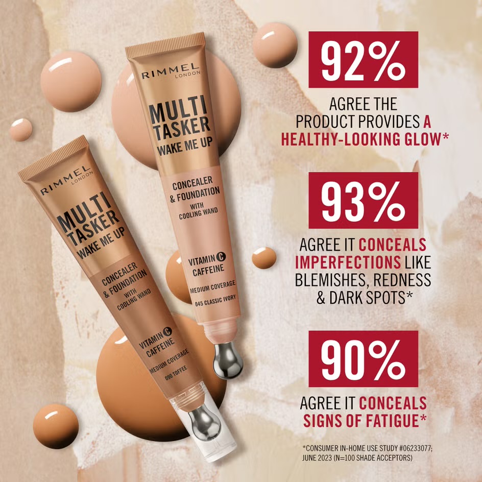Rimmel Multi-Tasker Wake Me Up Concealer & Foundation to wake up tired skin! This foundation makeup brightens, corrects and revives skin.
