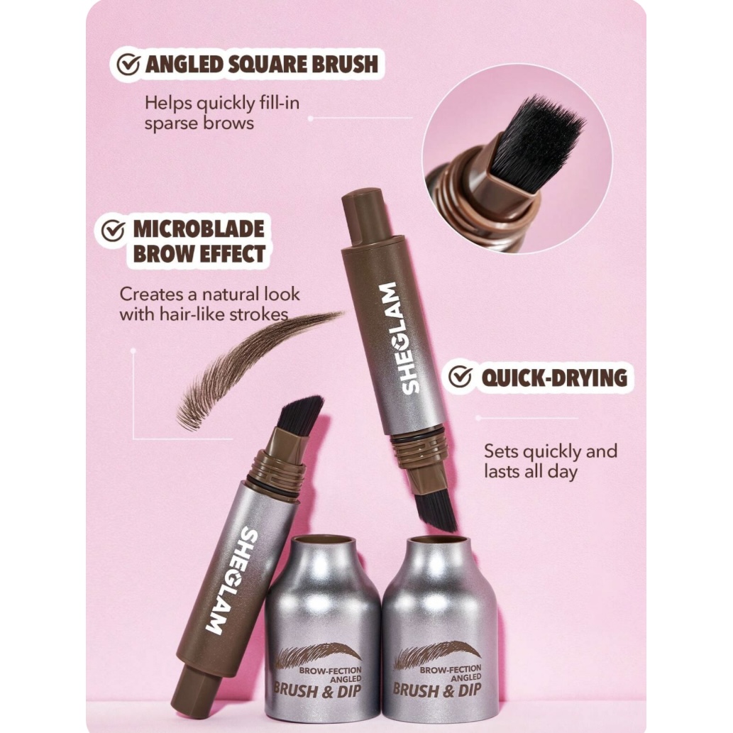 Fill in sparse brows or create a completely custom brow look with our SHEGLAM Brow-fection Angled Brush & Dip! Featuring an angled square brush and a matte liquid solution, this innovative combo helps you achieve a stunning microblade effect with realistic hair-like strokes.