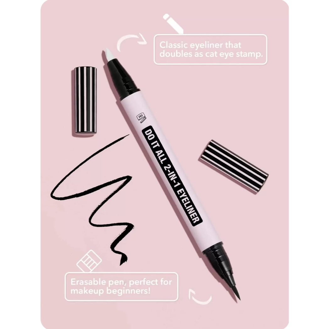 Get yourself an eyeliner that does it all! Our Do It All 2-in-1 Eyeliner features an innovative 2-in-1 design: sponge-tip liquid liner on one end that creates sleek, pigmented looks in a flash, PLUS a liner remover on the other for easy mistake cleanup. EASIEST. LINER. EVER!