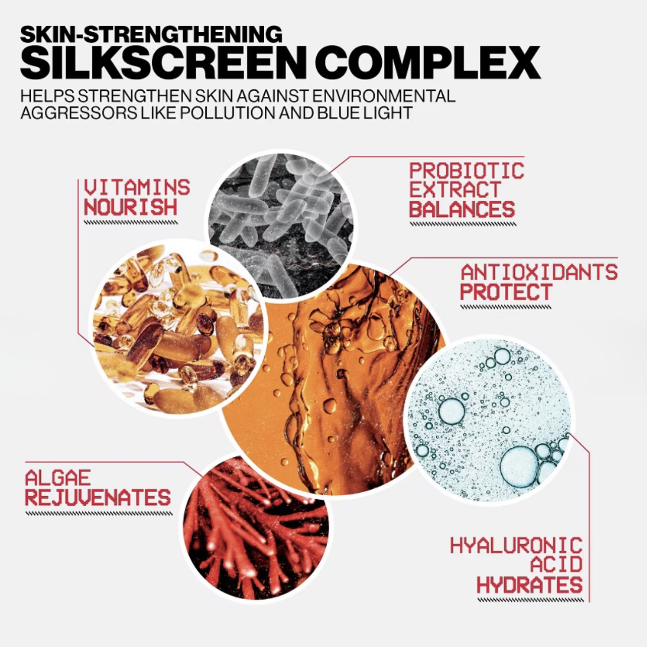 An oil-controlling and pore-minimizing primer infused with a Silkscreen Complex, Witch Hazel, Salicylic Acid, and Zinc. This skincare-powered formula creates a breathable, silky barrier that perfects the canvas by smoothing skin and strengthening it against damage from environmental aggressors like pollution and blue light. It starts mattifying skin in seconds and improves the look of makeup for up to 12 hours. We didn’t stop there: This face primer is also vegan and cruelty-free.