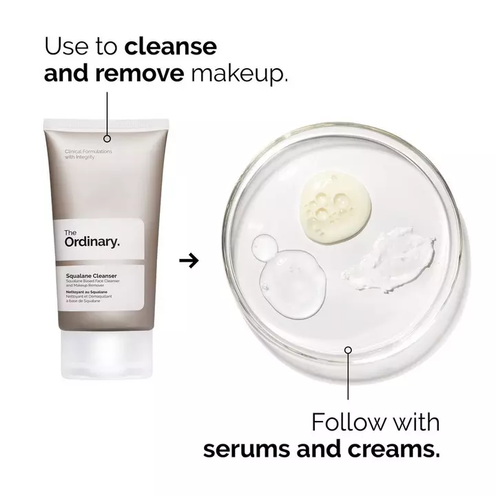 1)Squalane Cleanser is formulated to clean skin by removing makeup and dirt. This cleanser also supports your skin’s moisture barrier through hydration. Its skin-cleansing properties harness plant-derived squalane, a well-studied moisturizing agent, alongside lipophilic esters that will leave your skin feeling smooth and soft while dissolving makeup. The formula is non-comedogenic and soap-free so it’s gentle enough for daily use, suitable for all skin types, and suitable to combine with our other products.