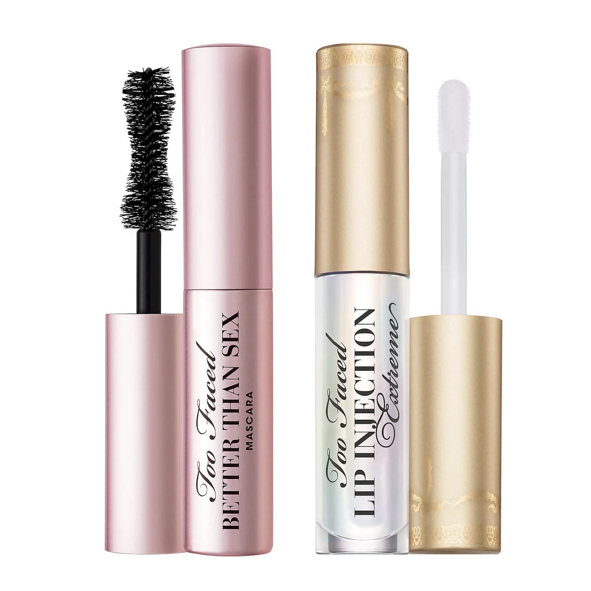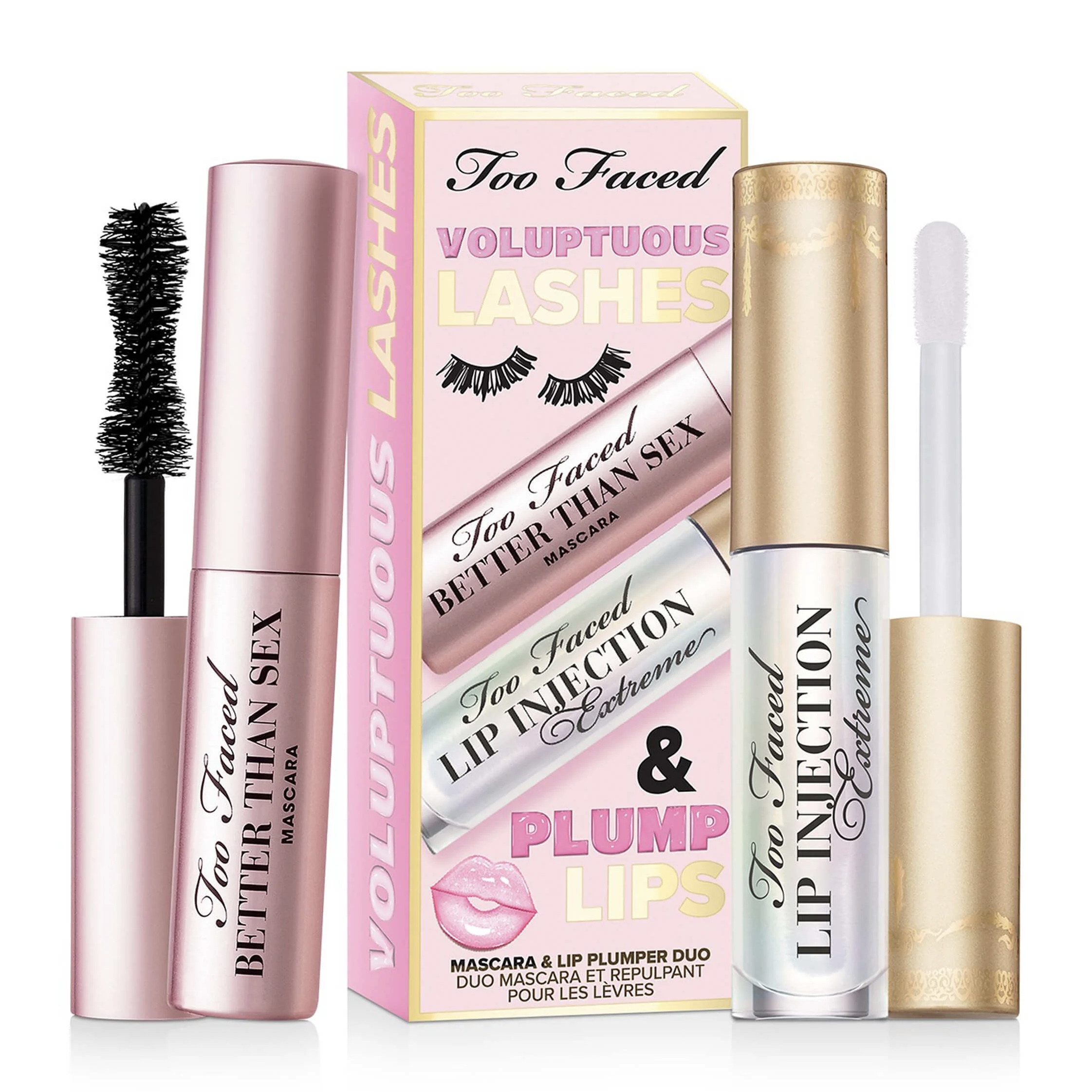 Plump it all up with a set of the most iconic volumizing products from Too Faced! Travel sizes of Better Than Sex Volumizing Mascara (A conditioning mascara with a formula that thickens, lengthens, and locks in curl for dramatic lashes with extreme volume) and Lip Injection Extreme (A powerful, rapidly plumping lip gloss that delivers lasting volume and hydration using scientifically tested, advanced lip-volumizing technologies) will give you the dramatic volumized lashes and sexy plump lips of your dreams!